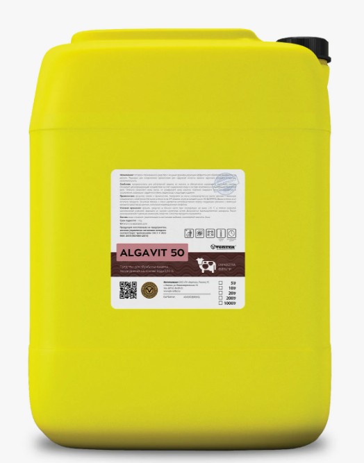 ALGAVIT 50 предназначен исключительно для обработки вымени коров. Не используйте средство для других частей тела животных.
