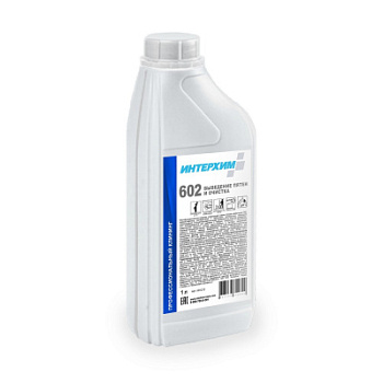 ИНТЕРХИМ 602 ВЫВЕДЕНИЕ ПЯТЕН И ОЧИСТКА — это профессиональное универсальное средство, которое станет незаменимым помощником как для специалистов клининговых компаний, так и для домохозяек. Это мощный очиститель создан специально для удаления самых сложных пятен и загрязнений с твердых поверхностей.