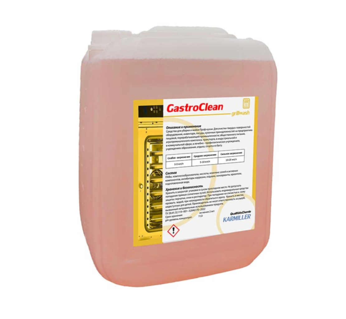 Уникальное жидкое средство GastroClean для использования на профессиональной кухне. Подходит для замачивания столовых приборов, посуды, инвентаря и т.п.