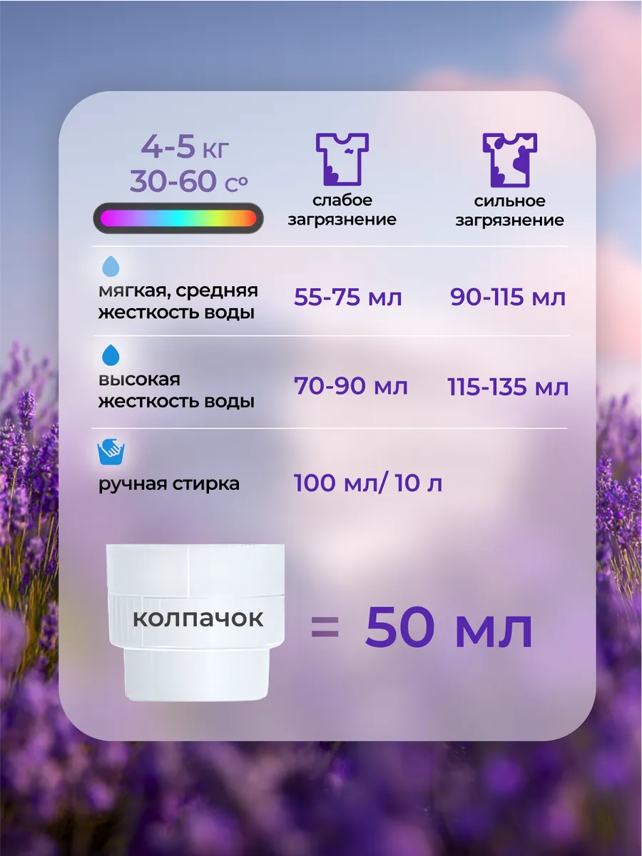 - Экономичный расход — от 30 мл на стирку