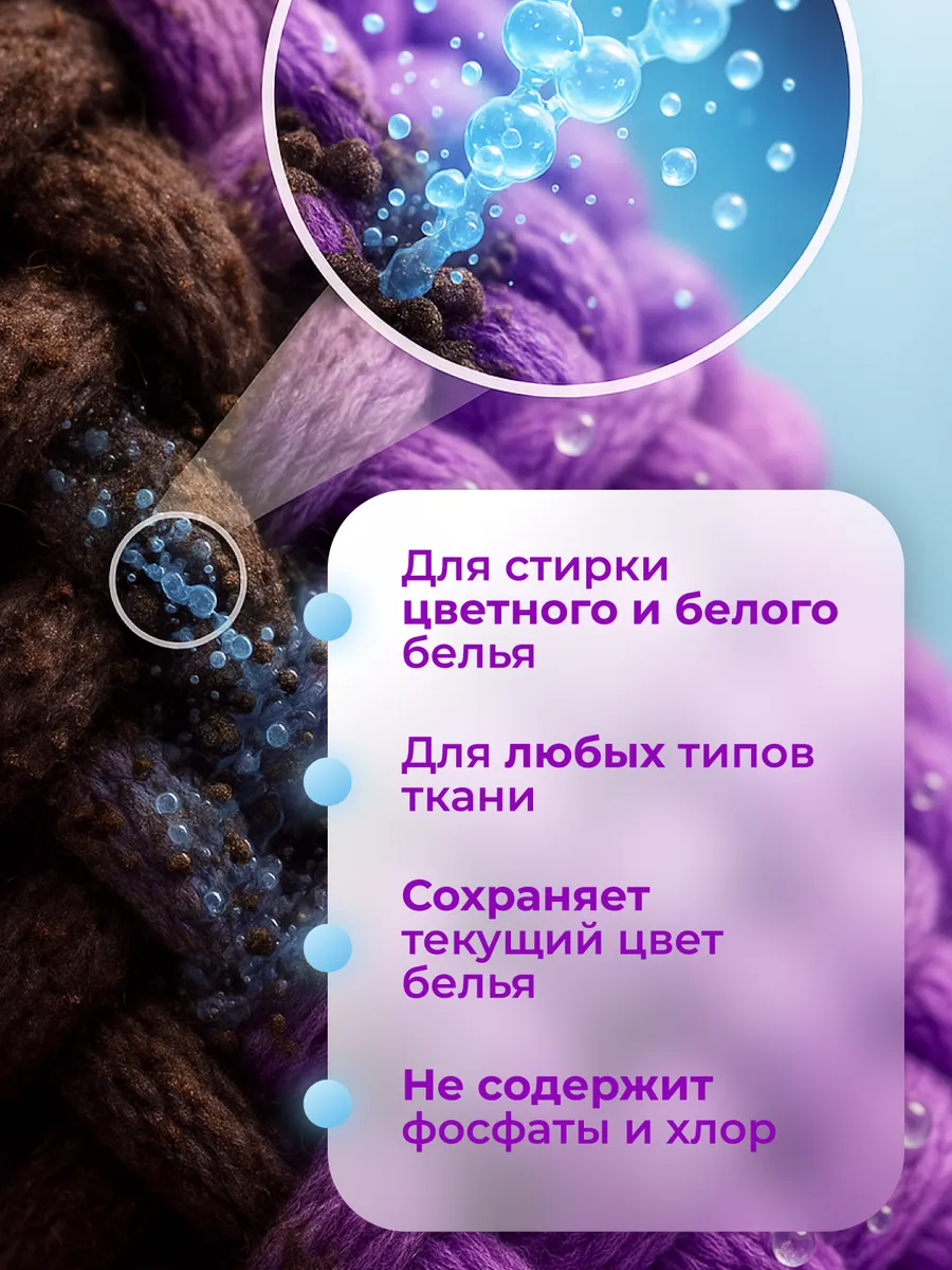 Подходит для хлопка, льна, синтетики. Работает в машинке и при ручной стирке. Экономичный расход: всего 30-80 мл на цикл. Антиресорбенты предотвращают повторное осаждение грязи.