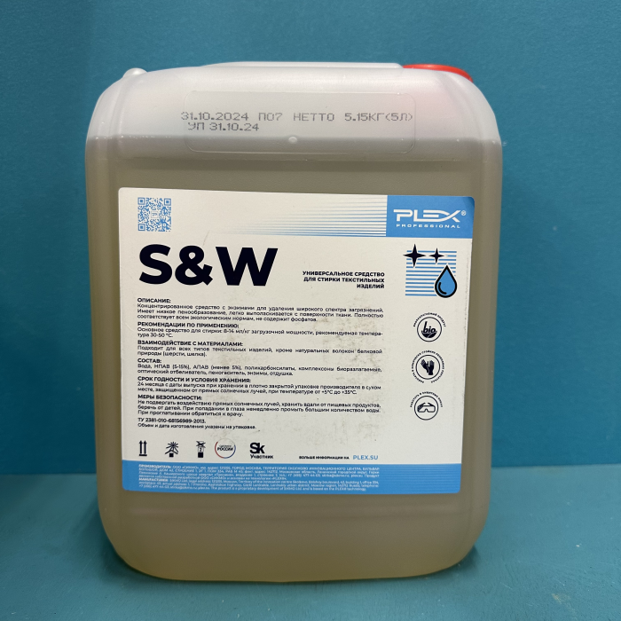 Ищете надежное решение для эффективной стирки? S&W PLEX - это высококонцентрированный гель без фосфатов, который станет незаменимым помощником как в профессиональной клининговой деятельности, так и в домашнем хозяйстве. Этот универсальный продукт подходит для стирки тканей всех типов, кроме деликатных шерсти и шелка.