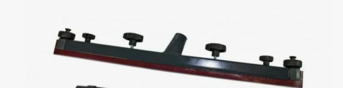 Прямой сквидж в сборе состоит из металлической балки и двух резиновых лезвий. Переднее лезвие имеет прорези для сбора грязной воды. Заднее гладкое лезвие обеспечивает окончательную сушку поверхности.