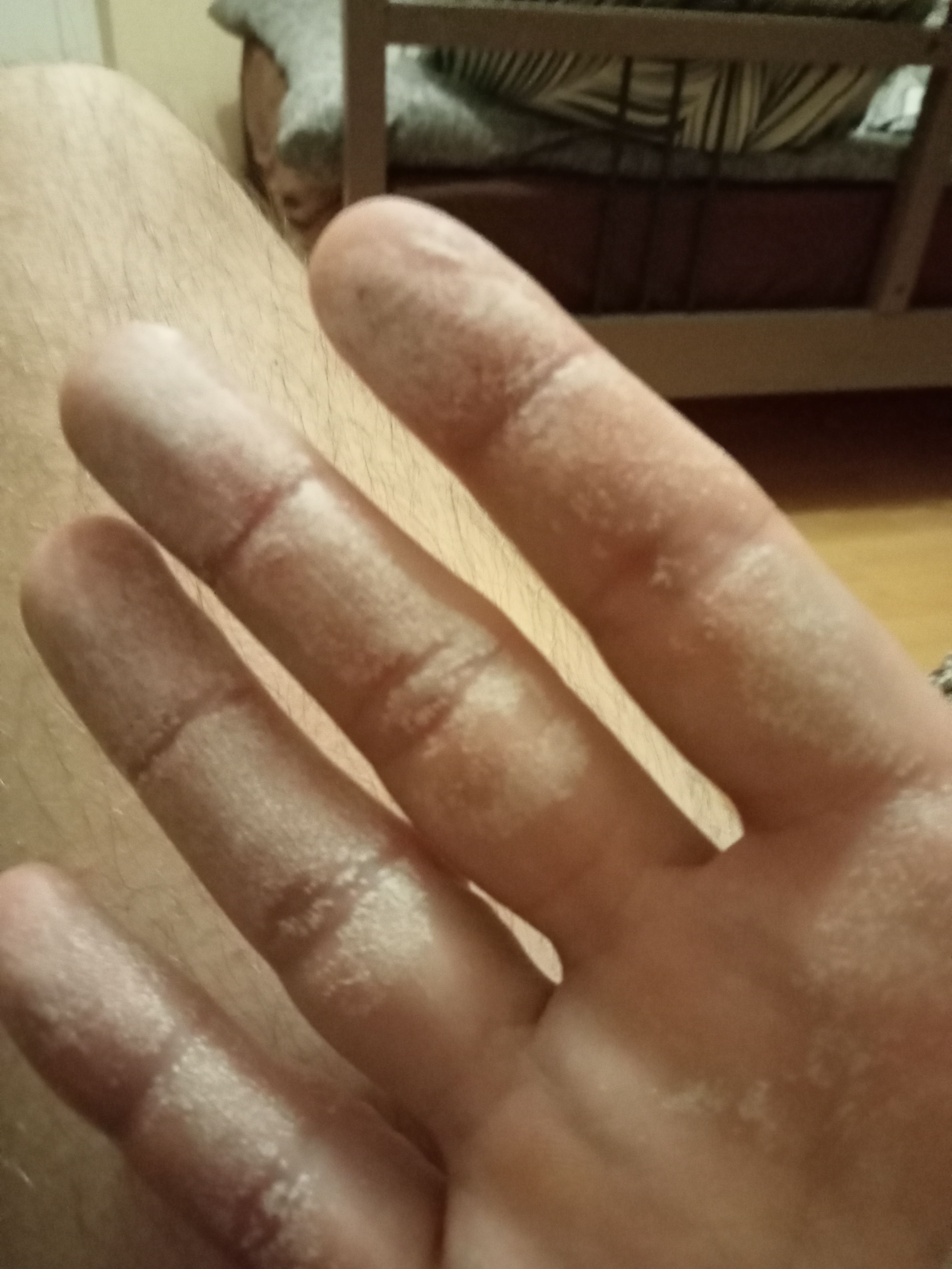 Заказал кислородный отбеливатель. Пришла поверженная бутылка и все содержимое капнуло на руки. Руки жжет уже минут 40 и все покрылись белым цветом
